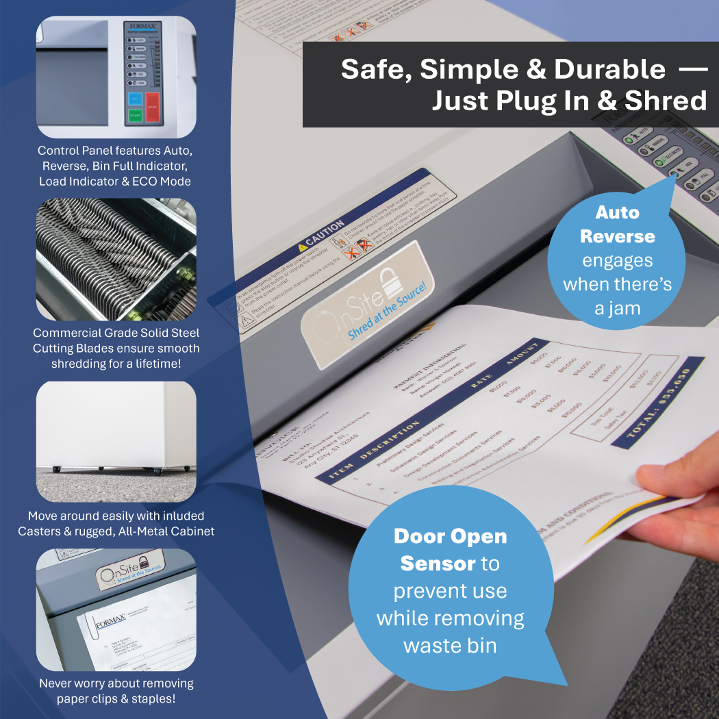 - Versatile shredding capabilities, accepting staples, paper clips, and credit cards